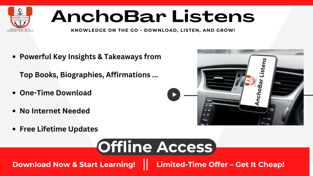 Tired of spending hours reading books? Want to absorb life-changing knowledge on the go? Anchobar delivers powerful audio summaries of top books in business, self-improvement, finance, biographies, positive affirmations, and more!