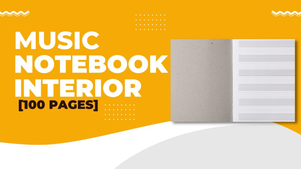 Music Notebook is a customized interior notebook designed for you. It contains 100 pages with 6x9 inches, no bleed. Is a one purchase so it it designed uniquely for you. You can upload directly on Amazon KDP.